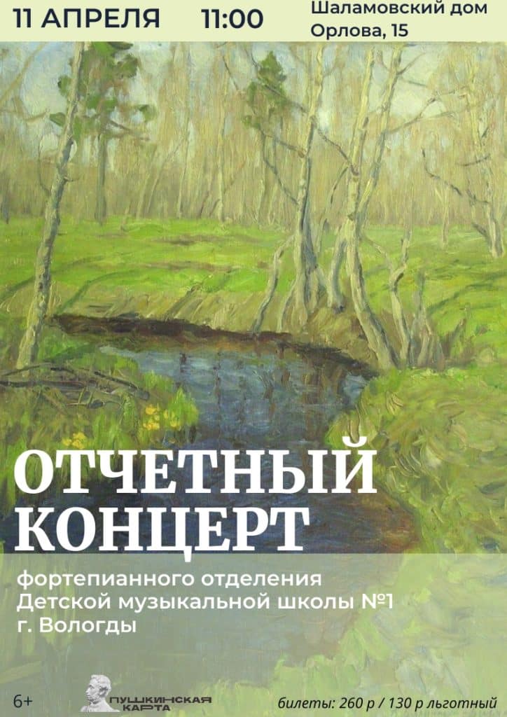 В субботу, 11 апреля, в 11:00 состоится отчетный концерт фортепианного отделения Детской музыкальной школы №1 г. Вологды. Приглашаем послушать музыку в исполнении юных дарований