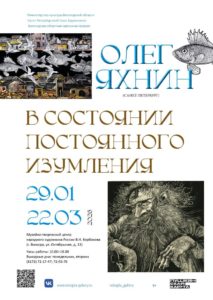 Накануне, 29 января 2026 года, в Доме Корбакова открылась выставка заслуженного художника России Олега Юрьевича Яхнина (из Санкт-Петербурга) . Выпускник Академии художеств — Института живописи, скульптуры и архитектуры имени И.Е. Репина (1972), Яхнин получил известность и признание не только в России, но и за рубежом. Представлены около 80 произведений в самых разных техниках. Это и живописные полотна, как отдельные работы, так и серии: портретов друзей художника, «Посвящение Марку Шагалу», монументальный триптих «Химеры», «Будни китайской горной деревни». «Блокада», «Священные тексты». Представлены также серии произведений в оригинальной графике (кисть, тушь) –например, пять работ из «Семи смертных грехов», и, конечно, работы в любимой технике автора — офорте – как станковые произведения, так и иллюстрации.